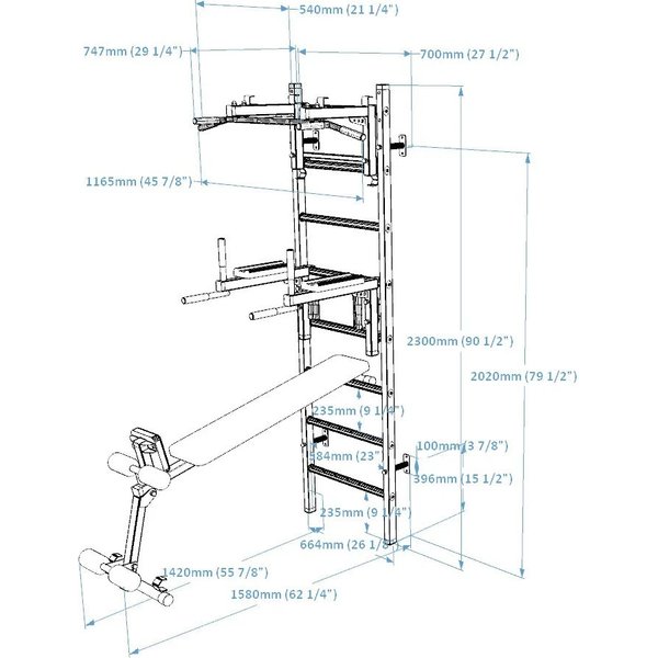Drabinka gimnastyczna z ławką i drążkiem 233 BenchK