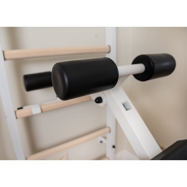 Praktyczność drabinki BenchK zwiększa także obecność poręczy do ćwiczeń, które są wyposażone w podłokietniki oraz oparcie pod plecy, zapewniając komfort i wsparcie w czasie treningu. Wykonane z integralnego poliuretanu, charakteryzują się trwałością i łatwością czyszczenia, co jest istotne przy codziennym użytkowaniu. Ławka treningowa, będąca częścią zestawu, umożliwia wykonywanie szerokiego zakresu ćwiczeń związanych z siłą i wytrzymałością. Wyposażona w dodatkowe siedzisko i cztery rolki pod kolana, pozwala na komfortowe realizowanie ćwiczeń na brzuch, z hantlami czy ze sztangą. Wykonanie z poliuretanu gwarantuje trwałość i estetyczny wygląd, który nie straci na jakości z upływem czasu.