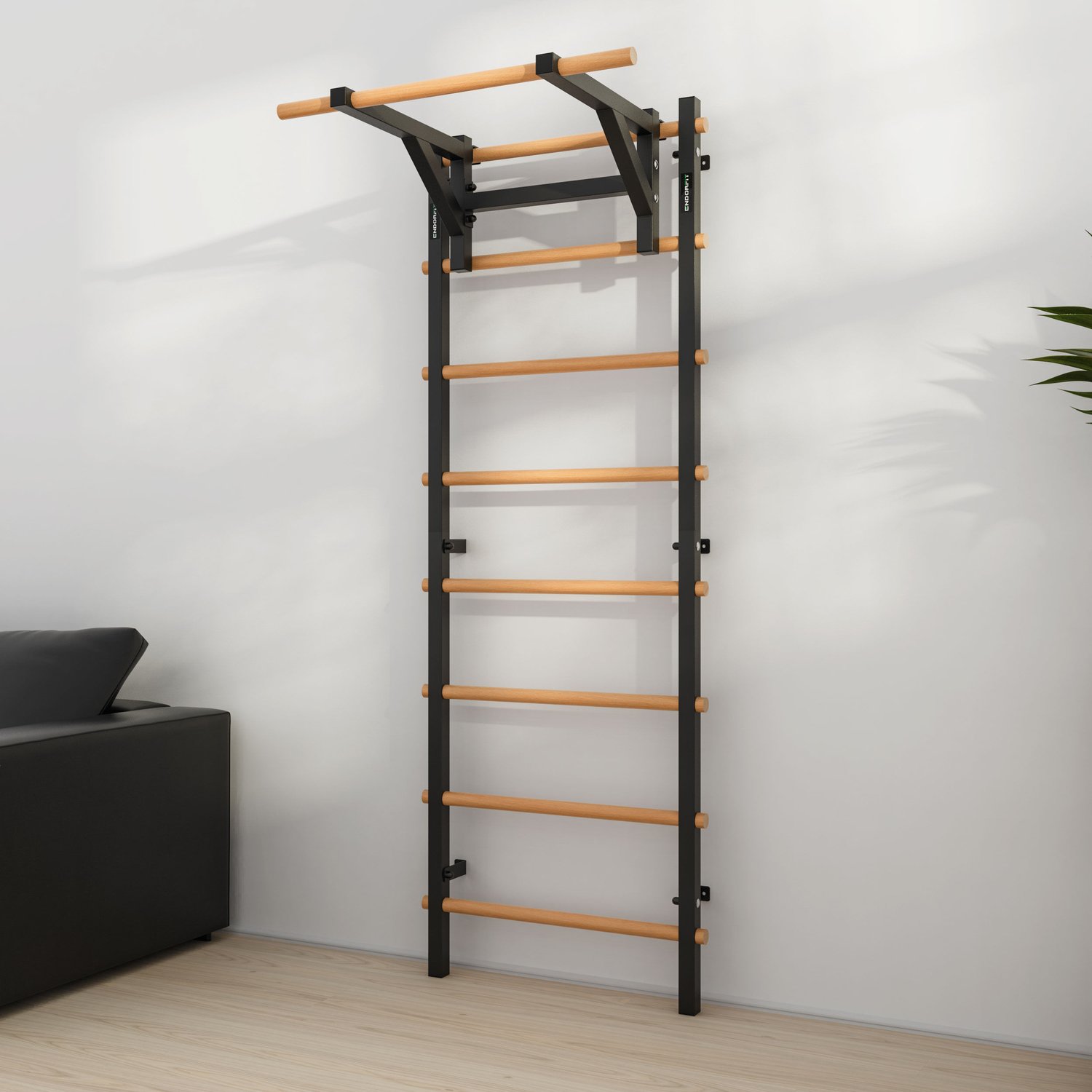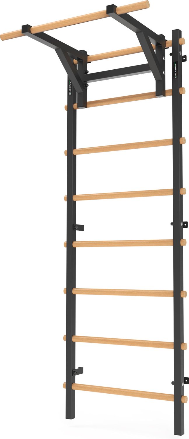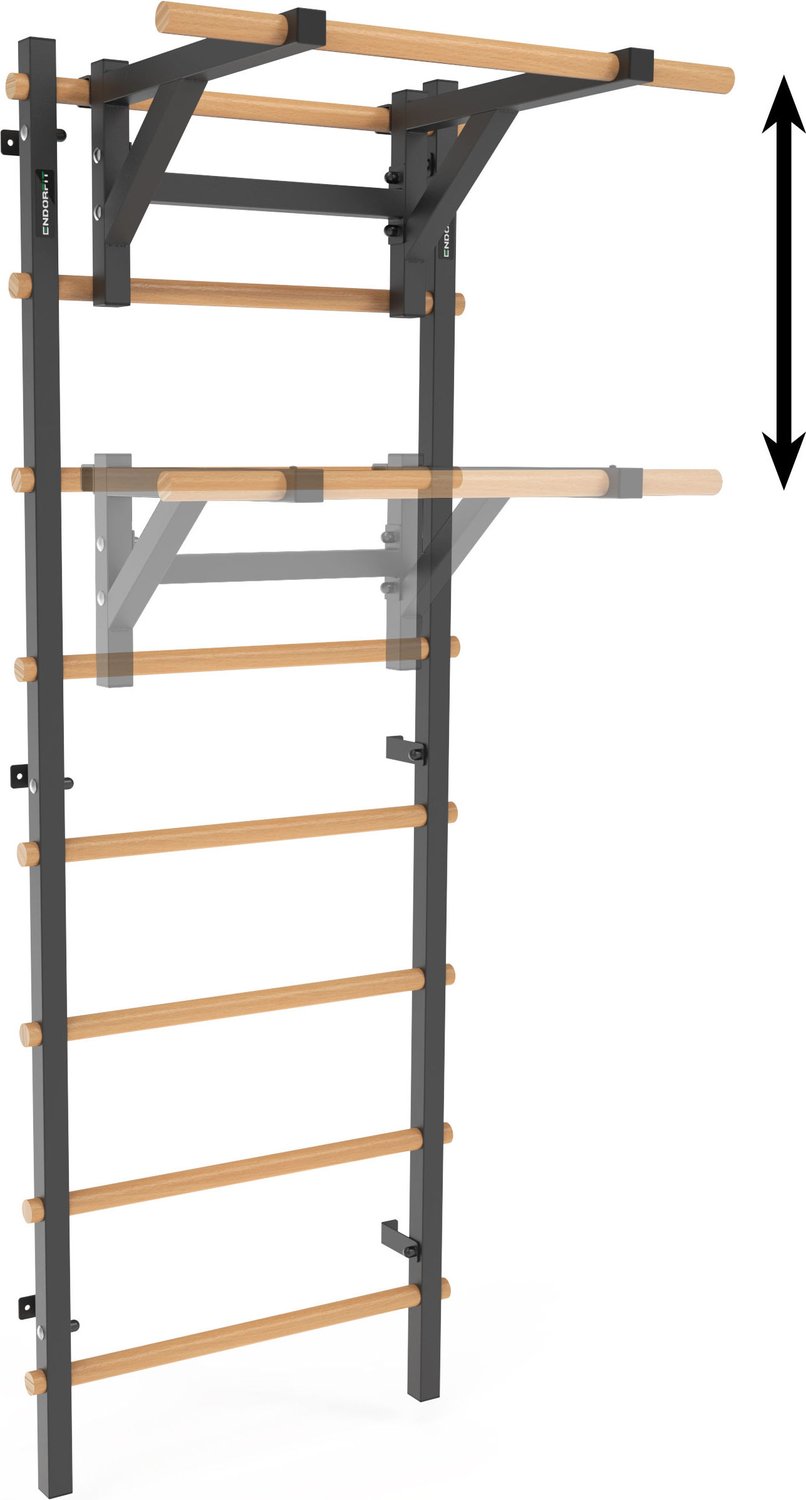 Drabinka ENDORFIT charakteryzuje się solidną, metalową konstrukcją, która zapewnia niezawodność i bezpieczeństwo podczas użytkowania. Szczeble wykonane z litego drewna bukowego nie tylko dodają estetyki, ale również gwarantują odpowiednią przyczepność podczas ćwiczeń. Taki design sprawia, że drabinka doskonale wpisuje się w nowoczesne wnętrza, stając się nie tylko funkcjonalnym sprzętem, ale także stylowym dodatkiem do każdej domowej siłowni. Montaż przyścienny zapewnia stabilność i oszczędność miejsca, co jest szczególnie ważne w przypadku mniejszych przestrzeni. Liczne otwory montażowe oraz elementy łączące metalowe i drewniane pozwalają na łatwą instalację, dostosowaną do indywidualnych potrzeb użytkownika. Drążek do podciągania, będący częścią zestawu, wyposażony jest w ergonomiczne uchwyty, które zapewniają komfort i pewność chwytu podczas ćwiczeń. To rozwiązanie pozwala na wykonywanie wielu wariantów podciągań, angażujących różne partie mięśniowe, co przyczynia się do wszechstronnego rozwoju całego ciała.