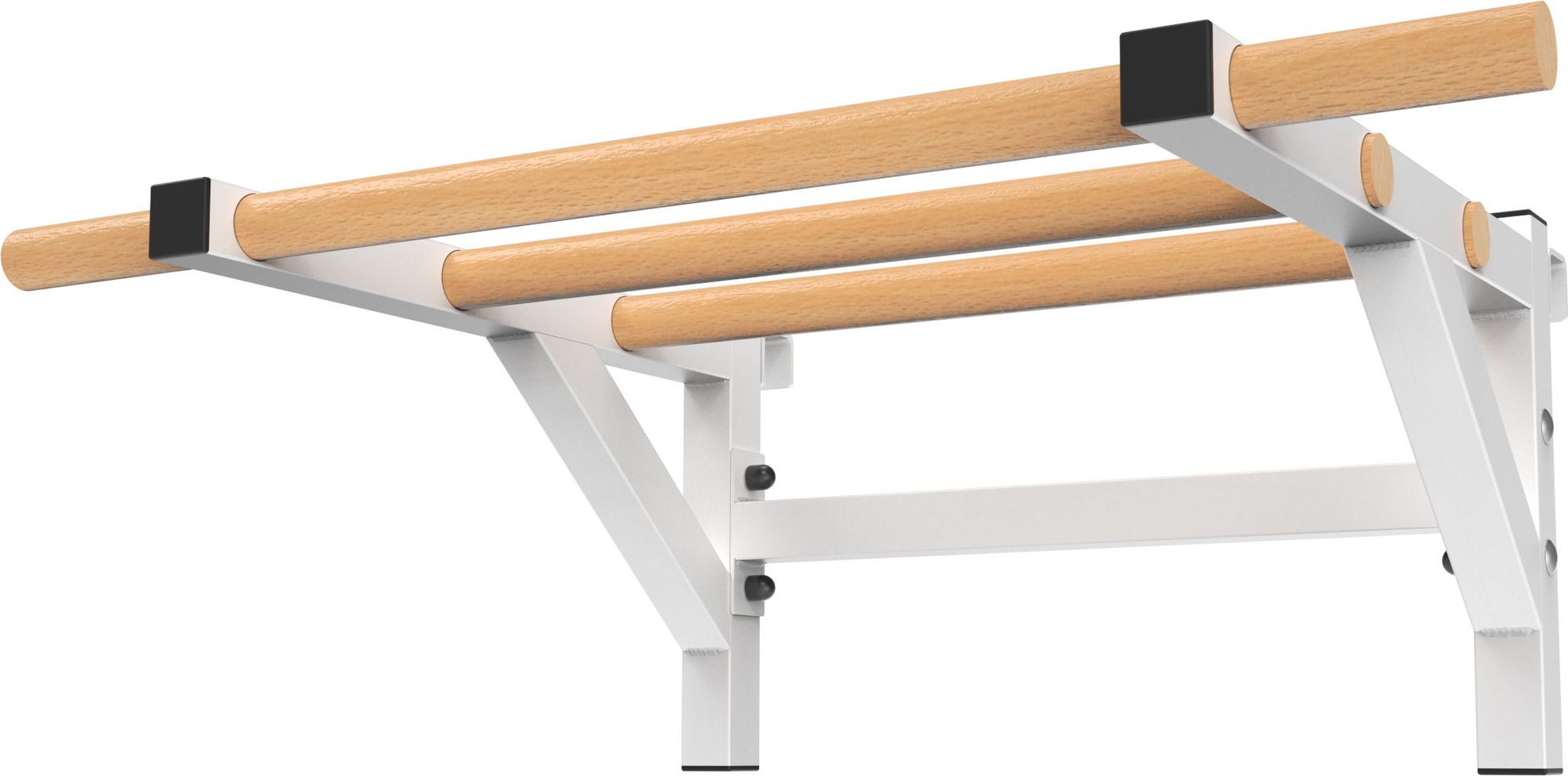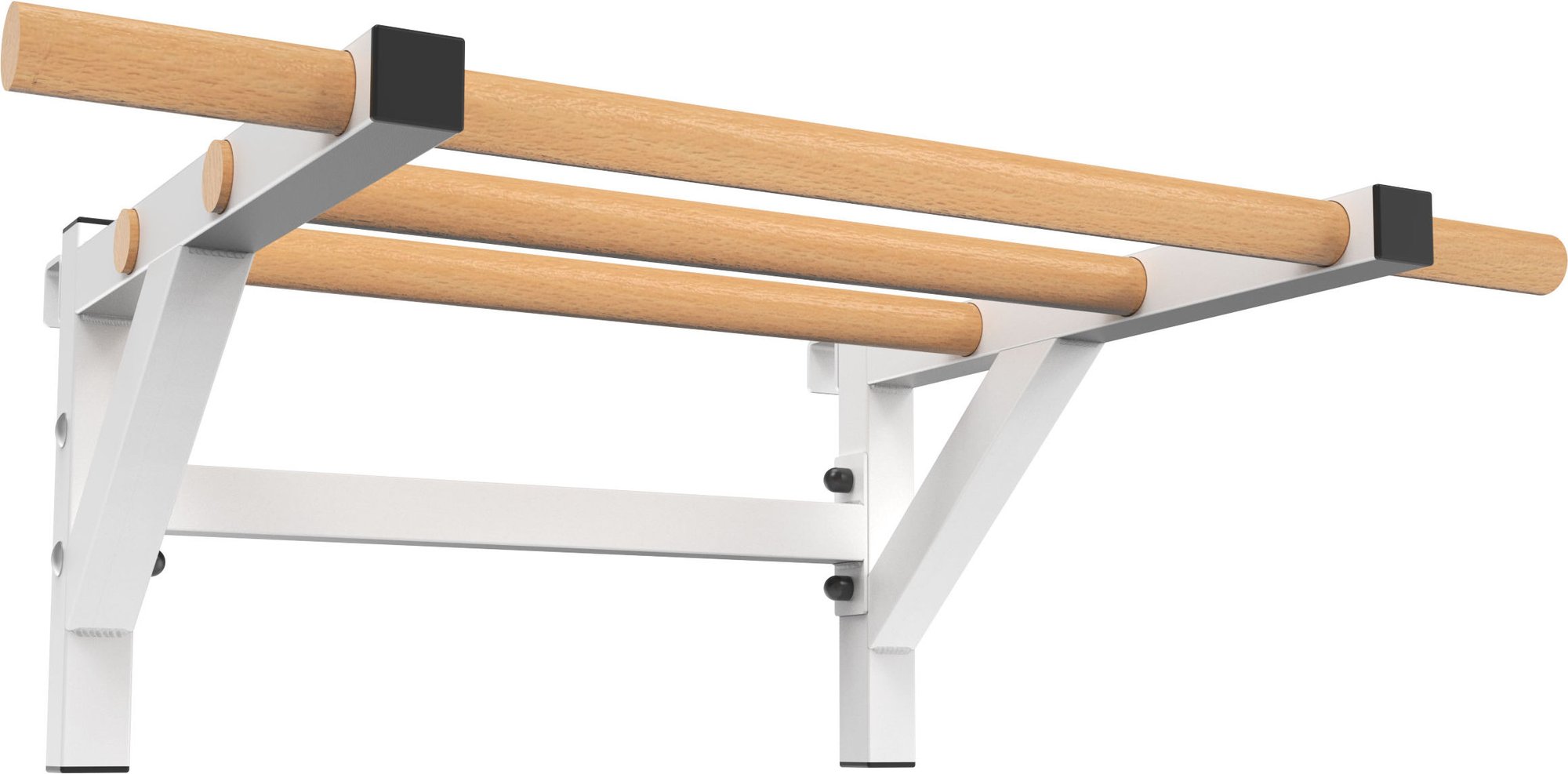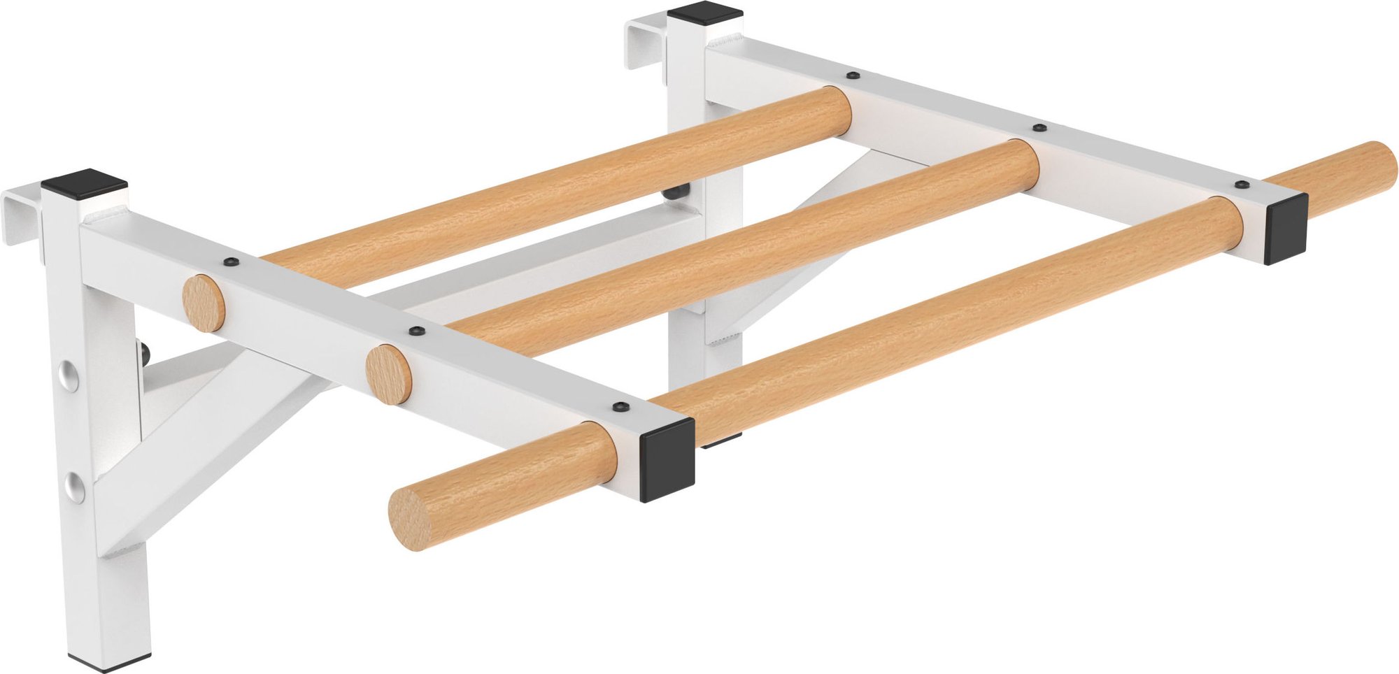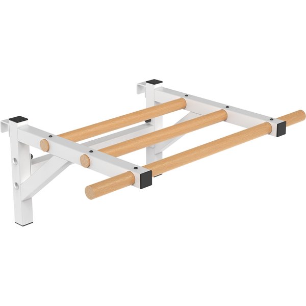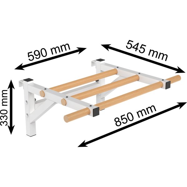 Drążek do drabinek Endorfit to wyjątkowy element wyposażenia domowej siłowni, łączący trwałość z estetyką. Dzięki zastosowaniu wysokiej jakości stali, całość charakteryzuje się niezwykłą wytrzymałością i odpornością na korozję, co gwarantuje bezpieczeństwo podczas intensywnych treningów. Drewniane drążki, wykonane z bukowego drewna, zostały starannie olejowane, co zapewnia wygodny chwyt oraz ochronę przed wysychaniem i zabrudzeniami. Konstrukcja metalowa, wsparta wzmocnieniami bocznymi i czterema mocowaniami ściennymi, stabilnie się trzyma, umożliwiając bezpieczny montaż na ścianie. Produkt ten, stworzony z polskich surowców, łączy funkcjonalność z eleganckim designem.