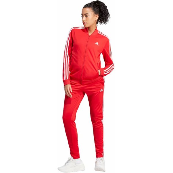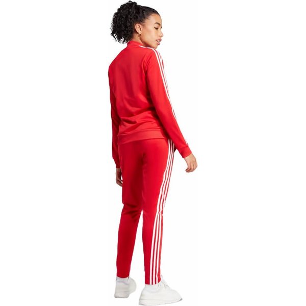 Dres damski Essentials 3-Stripes Adidas to miękki dres o dopasowanym kroju, który doskonale sprawdzi się w codziennym życiu. Wykonany z miękkiego trykotu, zapewnia wygodę i komfort. Dres posiada wszystkie niezbędne detale, takie jak suwak na całej długości, zapinane na suwak przednie kieszenie w spodniach i bluzie, ściągaczowy dół i mankiety oraz elastyczną talię ze sznurkiem do regulacji. Co najważniejsze, co najmniej 70% materiałów użytych do produkcji tego produktu pochodzi z recyklingu i surowców odnawialnych. Idealny wybór dla wszystkich, którzy cenią sobie styl, wygodę i troskę o środowisko.