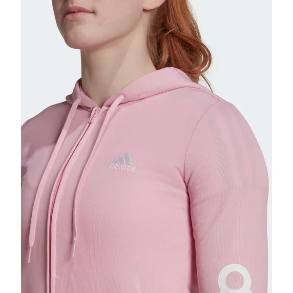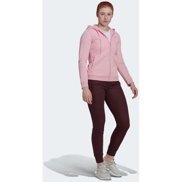 Dopasowany krój sprawia, że Twój styl staje się jeszcze bardziej sportowy. Suwak na całej długości bluzy ułatwia zdejmowanie i ubieranie bluzy. W materiale frotté poczujesz się przyjemnie otulona, a kupując ten dres marki Adidas, wspomagasz walkę na rzecz środowiska, ponieważ poliester, z którego wyprodukowany jest ten model, pochodzi z recyklingu. Elastyczna talia spodni zapewni dopasowanie, a zwężane nogawki pomogą utrzymać dolną część stroju na miejscu. Do kieszeni górnej i dolnej części dresu schowasz najpotrzebniejsze rzeczy.