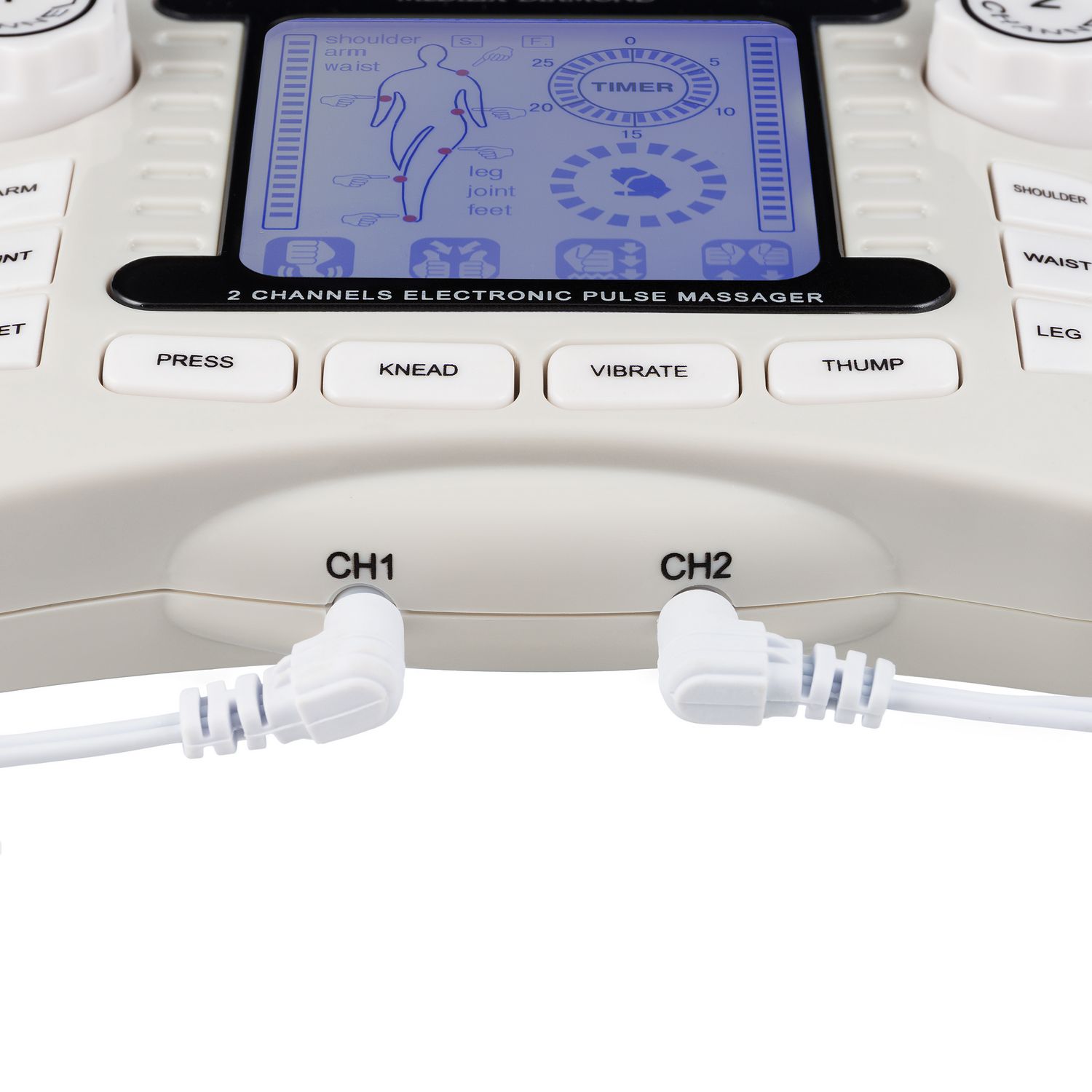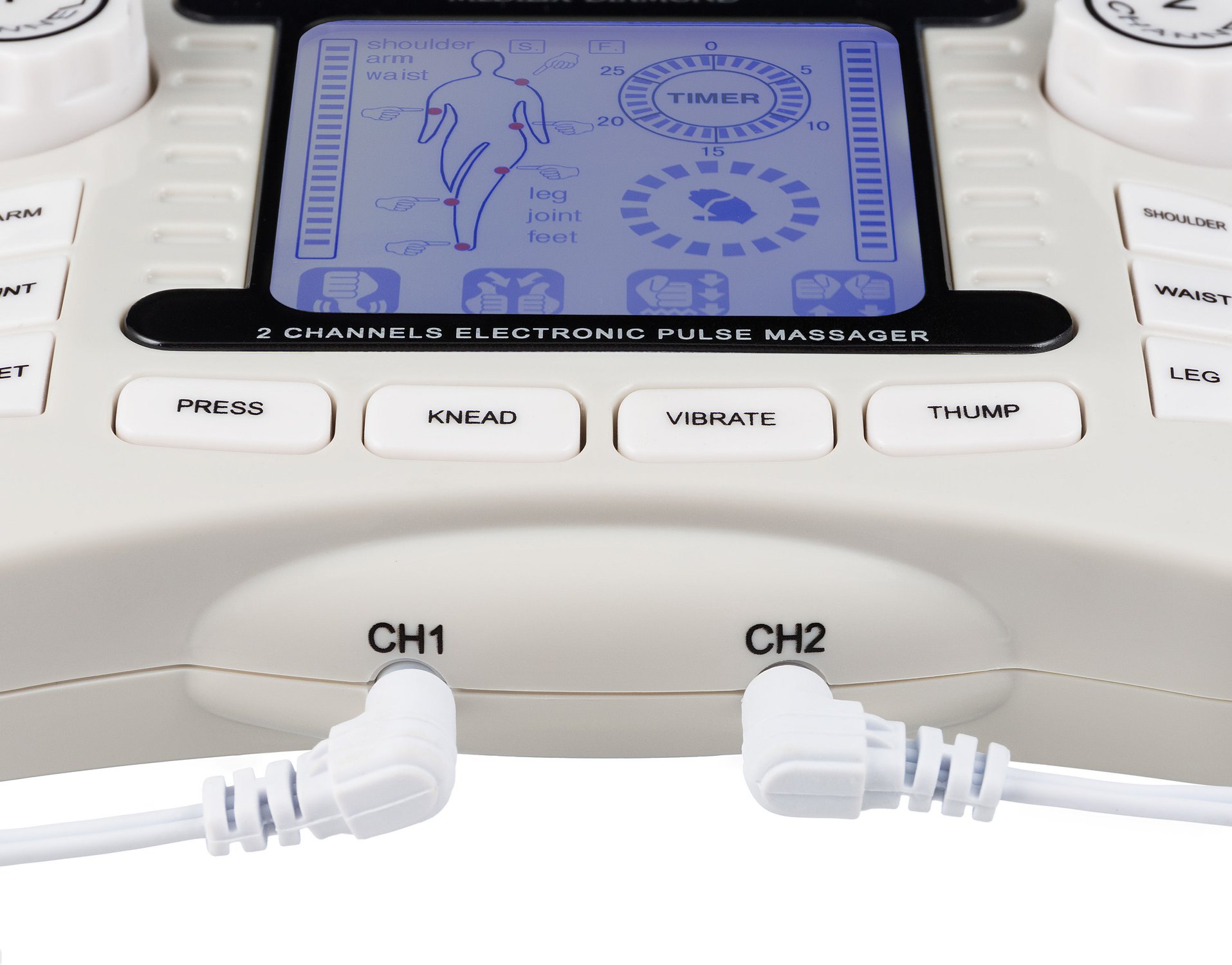 - Technologia Dual Channel: Umożliwia jednoczesne korzystanie z urządzenia przez dwie osoby lub zastosowanie na różnych partiach mięśniowych.