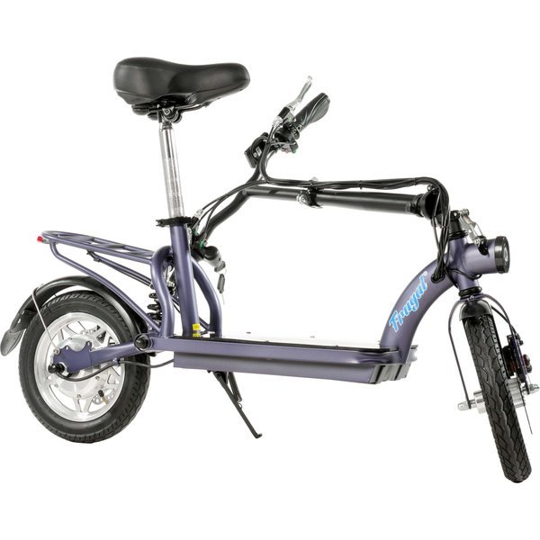 Elektryczna hulajnoga City marki Frugal, to ultralekka oraz prosta w obsłudze opcja dla wielbicieli spokojnej jazdy. Model posiadający dodatkowo wbudowany bagażnik doskonale sprawdzi się zwłaszcza u osób starszych. Dzięki możliwości regulacji siodła oraz kierownicy, możesz samodzielnie dopasować wysokości pod katem własnego komfortu oraz wzrostu.