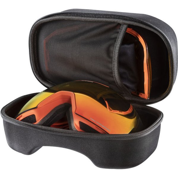 Etui na gogle narciarskie Attract Uvex to idealne rozwiązanie dla osób ceniących bezpieczeństwo i ochronę swojego sprzętu. Dzięki sztywnej konstrukcji etui skutecznie zabezpiecza gogle przed uszkodzeniami podczas transportu. Wnętrze wyściełane miękkim materiałem oraz wewnętrzna przegroda zapewniają dodatkową ochronę i zapobiegają porysowaniu lustrzanej szyby. Zamek błyskawiczny umożliwia łatwy dostęp do gogli, a wytłoczone logo na górze podkreśla elegancki design. Etui zostało zaprojektowane z myślą o maksymalnej wygodzie, umożliwiając przechowywanie gogli z wymienną szybą, co czyni je niezastąpionym akcesorium dla każdego narciarza lub snowboardzisty.