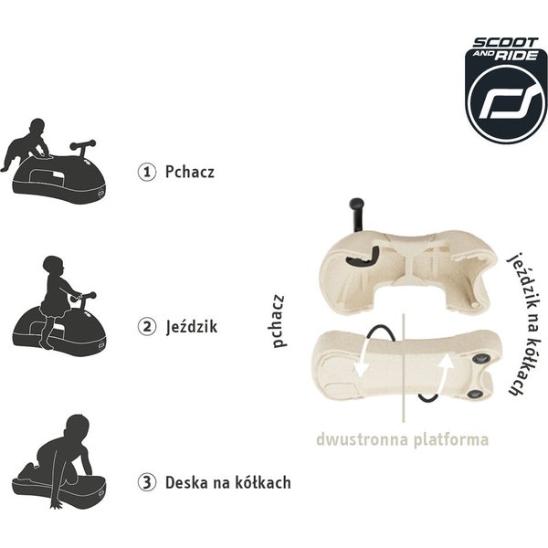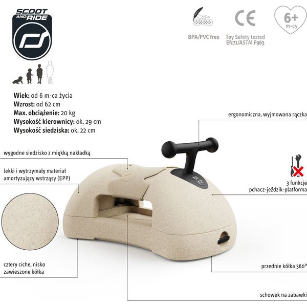 - wielofunkcyjny - zabawka 3w1: pchacz, jeździk i deska na kółkach,