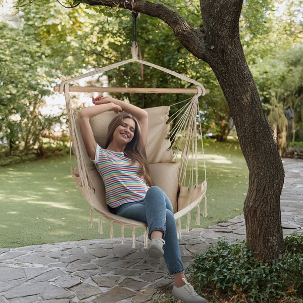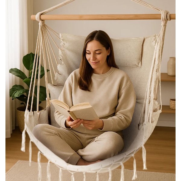 • Solidna i wytrzymała konstrukcja: Grube, plecione sznury oraz wzmocnione węzły zapewniają stabilność i udźwig do 150 kg, gwarantując trwałość i bezpieczeństwo użytkowania.