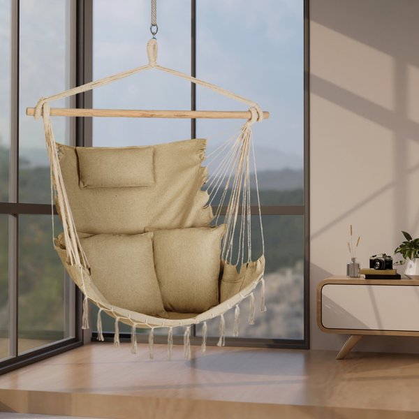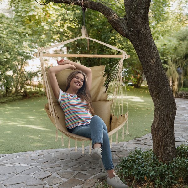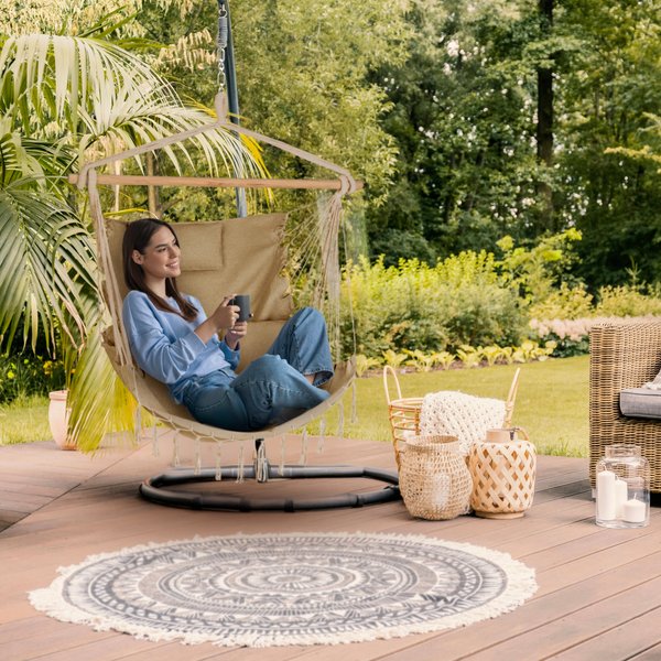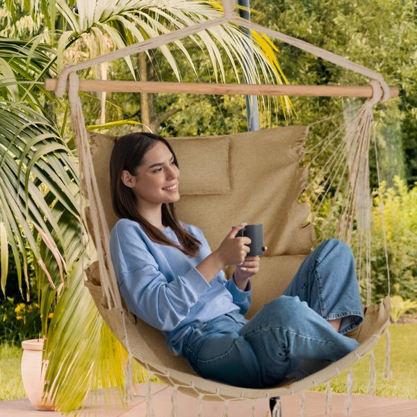 Fotel brazylijski Outtec to połączenie wygody, stylu i funkcjonalności, które zapewni Ci relaks w dowolnym miejscu. Dzięki prostemu montażowi można go szybko zawiesić na balkonie, w ogrodzie, na tarasie, a nawet wewnątrz pomieszczeń, tworząc przytulną strefę odpoczynku.