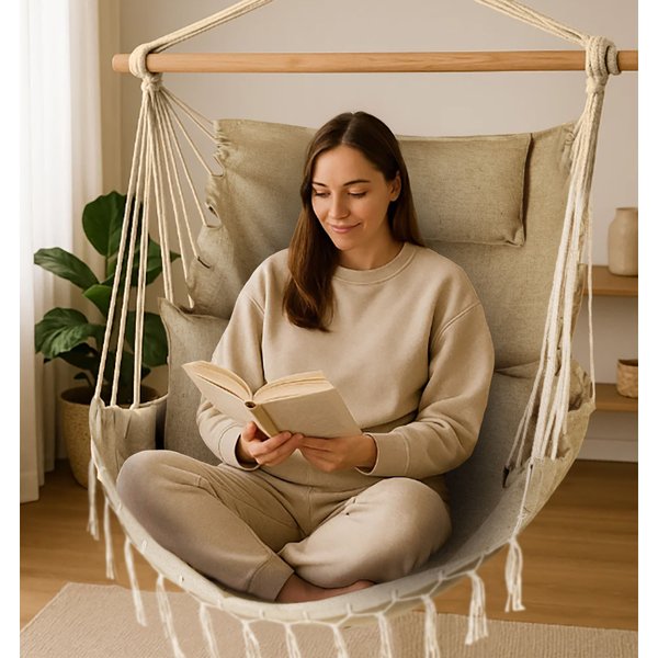 - Solidna i wytrzymała konstrukcja: Grube, plecione sznury oraz wzmocnione węzły zapewniają stabilność i udźwig do 150 kg, gwarantując trwałość i bezpieczeństwo użytkowania.
