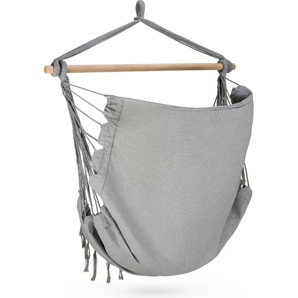 Hamak wykonano z wytrzymałego materiału będącego połączeniem bawełny i poliestru. Tkanina ta cechuje się podwyższoną odpornością na przetarcia i uszkodzenia mechaniczne. Również dzięki niej maksymalne obciążenie hamaka wynosi 140kg. Prosty montaż i kompaktowe wymiary sprawiają, że znajdziesz na niego miejsce nawet na niewielkim balkonie. Nic nie stoi na przeszkodzie, by fotel ten zamontować również w salonie czy sypialni. Przewiewna konstrukcja zapewnia komfort wypoczynku w upalne dni.