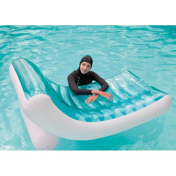 Wygodny fotel i w przeciwienstwie do innych tego typu materaców dmuchanych ma duży plus bo łatwo w wodzie usiąść na niego