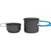 Konstrukcja została wykonana z wysokojakościowego anodyzowanego aluminium, które nie absorbuje zapachu ani smaku przechowywanych potraw, naczynie jest łatwe w utrzymaniu czystości. Garnek o pojemności 500 mililitrów posiada uchwyty powleczone specjalnym nieprzewodzącym ciepła materiałem, co ułatwia gotowanie i czyni je bezpieczniejszym. Wyżłobiona na zewnętrznej stronie miarka pomaga odmierzyć pożądaną ilość wody. Pokrywka może być używana jako mała patelnia, jej pojemność wynosi 250 mililitrów. Dzięki składanym uchwytom naczynie zajmuje mało miejsca w torbie czy plecaku, dodatkowo w środku możesz umieścić palnik i kartusz 100 gramów i zyskać jeszcze więcej wolnej przestrzeni. Lekka konstrukcja jest bezproblemowa w transporcie. Trwały produkt będzie Ci towarzyszył podczas wielu wycieczek.