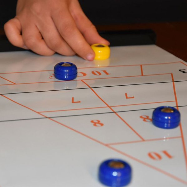 Gra stołowa Shuffleboard Sunflex to doskonały sposób na spędzenie czasu w kreatywny i interaktywny sposób. Ta gra towarzyska skupia się na przesuwaniu krążków w kierunku końca planszy i umieszczaniu ich w ponumerowanych korytarzach. Liczba tur jest ustalana przez graczy, a po ich rozegraniu sumuje się wyniki z każdej tury. Gra uczy pracy zespołowej, precyzji i rozwija zdolności strategiczne uczestników w różnym wieku. Zestaw zawiera dwie szyny magnetyczne, które umożliwiają łatwe rozłożenie planszy na stole. Krążki doskonale przesuwają się w kierunku celu, a kompaktowa forma gry pozwala na rozgrywki w różnych miejscach. Wymiary planszy to 120x28 cm, a zestaw zawiera 10 krążków oraz instrukcję dla graczy w wieku 5+.