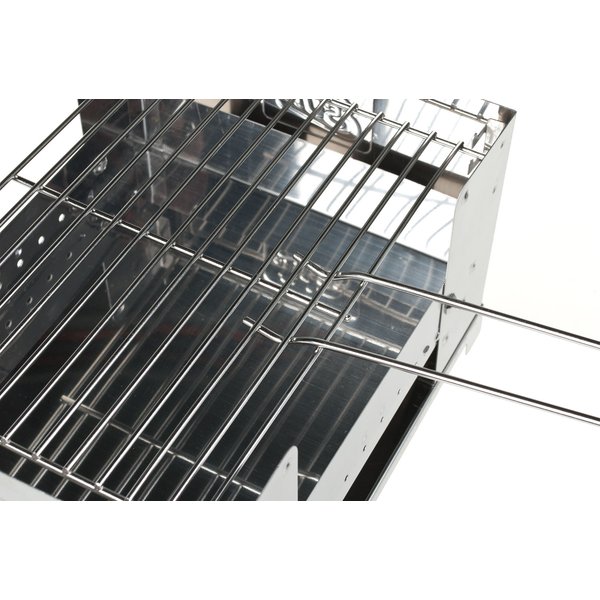 Nie rezygnuj z grillowania gdziekolwiek się znajdujesz! Specjalna, składana konstrukcja, wykonana jest ze stali nierdzewnej, co zapewni szybkie i łatwe rozkładanie oraz czyszczenie. Podstawka zapewnia doskonałą stabilizację na każdym podłożu. Ruszt może być zamocowany na trzech różnych wysokościach, a zdejmowanie go i zakładanie ułatwia chwytak.