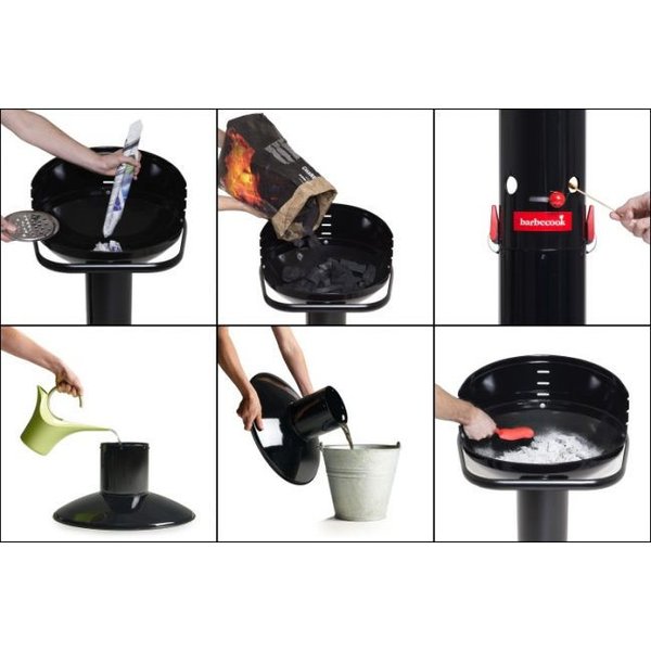 Z kolei wbudowany w podstawę pojemnik z wodą pozwala na wygaszenie żaru oraz ułatwia czyszczenie grilla. Popiół po grillowaniu wystarczy zmieść do kolumny, następnie wypiąć podstawę i wylać wodę. Możesz także regulować wysokości płomieni, w czym pomocne będą otwory wentylacyjne.