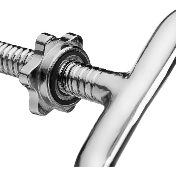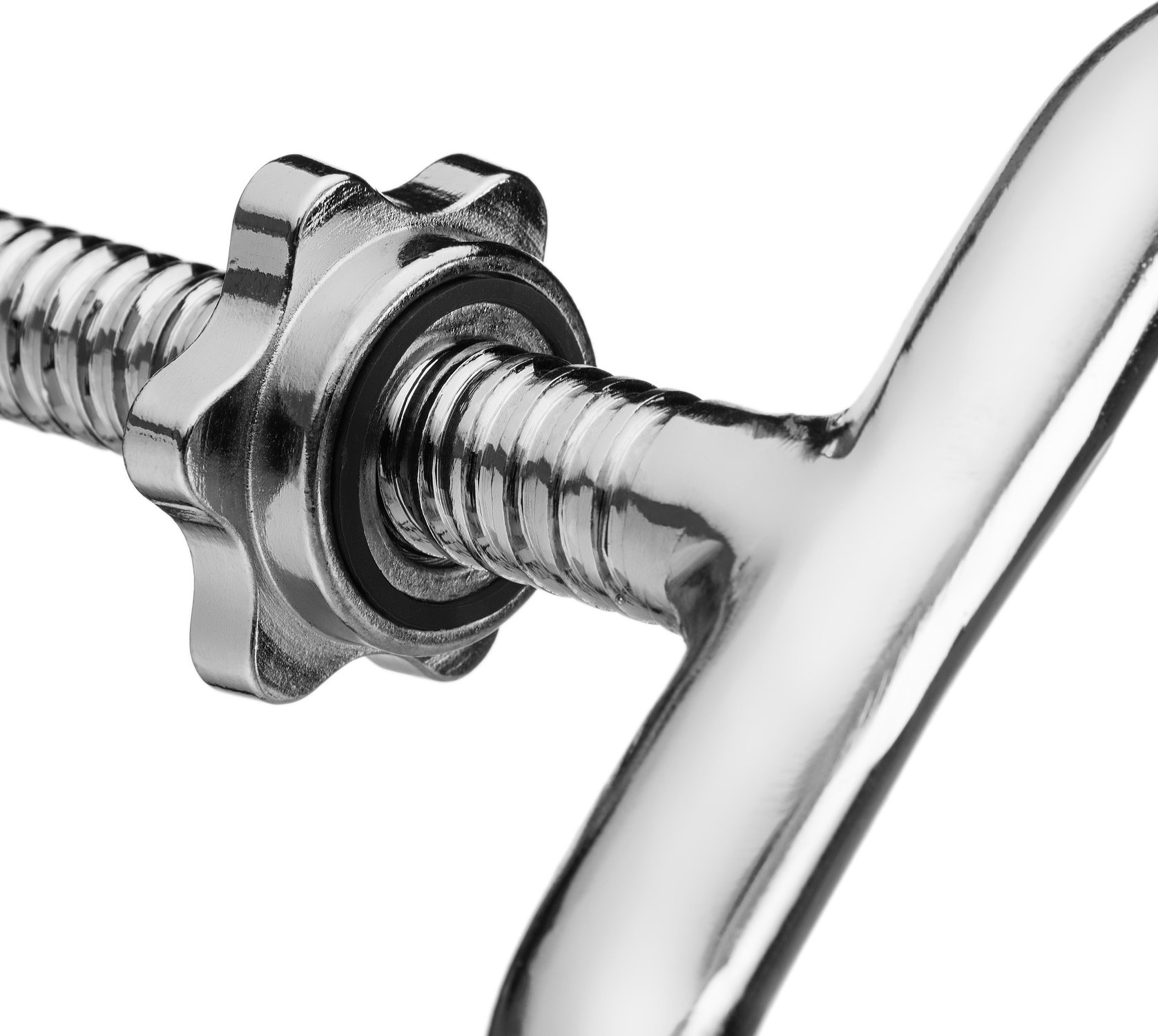 Nakrętki gwintowane skutecznie unieruchamiają talerze na gryfie, eliminując ryzyko ich przesuwania się podczas ćwiczeń. Dzięki temu użytkownik może skupić się na treningu, bez obaw o utratę stabilności przy dynamicznych ruchach.