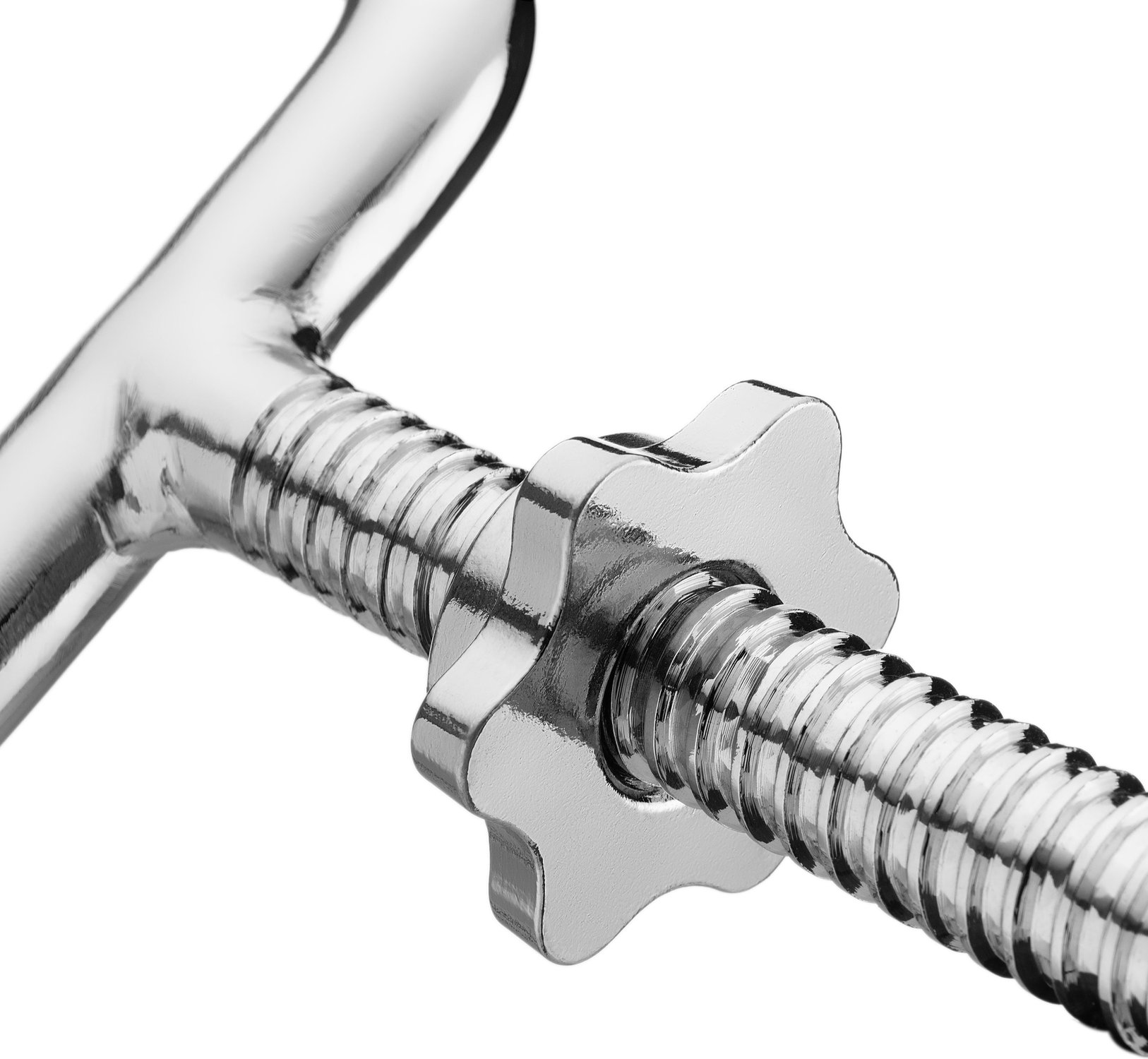 - Zabezpieczenie przed przesuwaniem się obciążeń: Dzięki spiralnemu gwintowi nakrętki mocno trzymają talerze w jednej pozycji, eliminując ryzyko ich poluzowania nawet podczas dynamicznych ćwiczeń.
