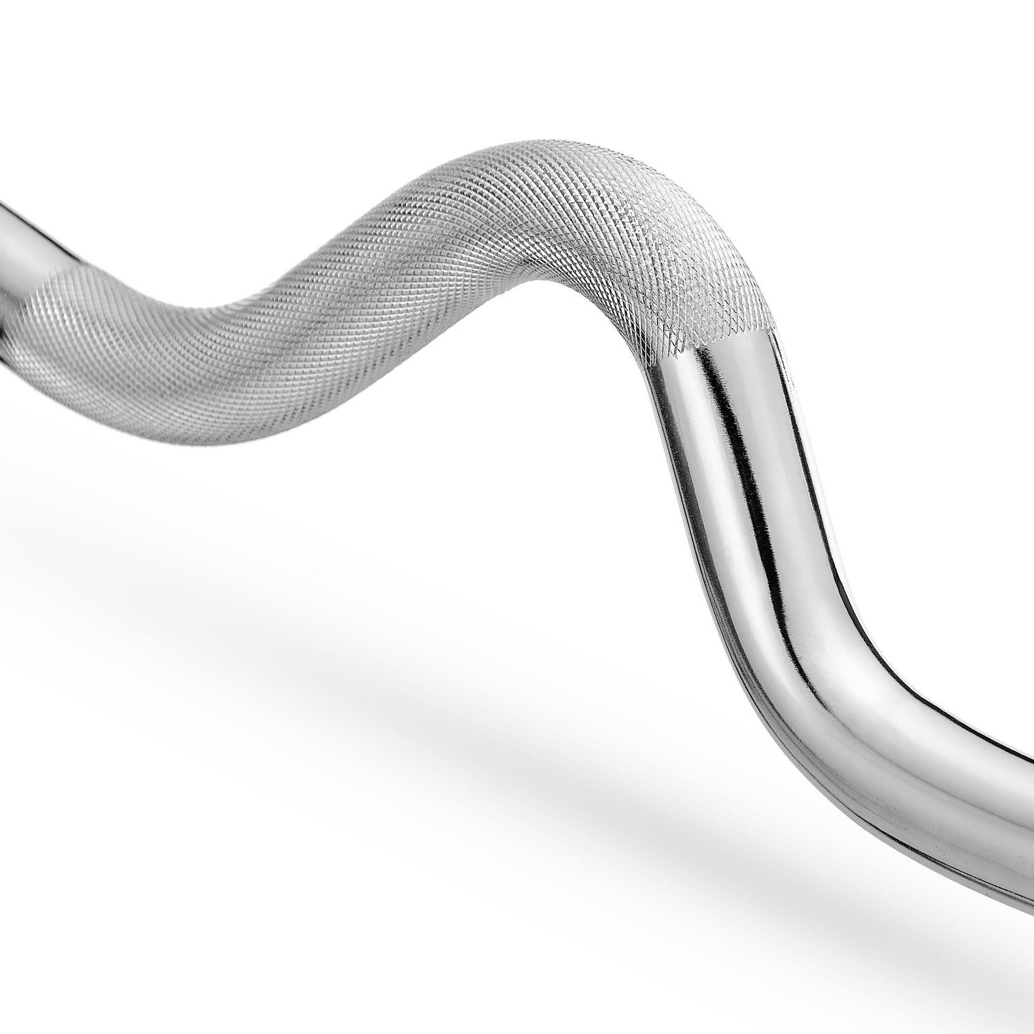 - Pewny chwyt dzięki ryflowaniu: Chwytna część gryfu ma długość 81,5 cm i została pokryta precyzyjnym ryflowaniem, które poprawia tarcie między dłonią a gryfem — zwiększając kontrolę nad ciężarem.