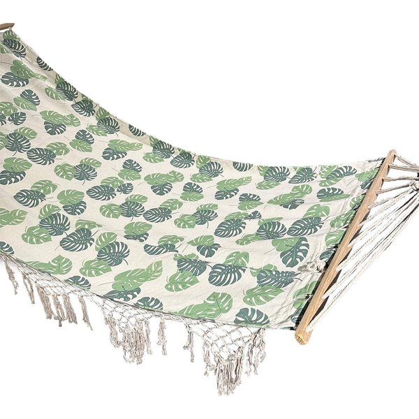 Hamak 1-osobowy 200x100cm Saska Garden to doskonałe rozwiązanie dla miłośników relaksu na świeżym powietrzu. Wykonany z wysokiej jakości materiału ze wzorem roślinnym oraz frędzlami na krawędziach, zapewnia wygodę i komfort podczas lenistwa. Solidne drewniane poprzeczki na obu końcach oraz sznury do zawieszenia gwarantują stabilność i bezpieczeństwo użytkowania. Hamak jest łatwy w montażu, symetryczny i płasko rozłożony, co zapewnia wygodne wypoczywanie. Odpowiedni dla osób o wadze do 120 kg. Zamień swój ogród w rajską oazę spokoju i relaksu z Hamakiem Saska Garden!