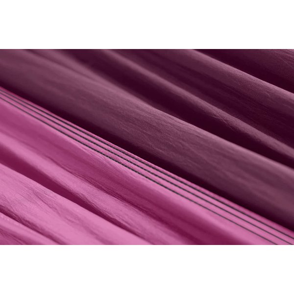 Konstrukcja jest przeznaczona dla dwóch osób, jest wyjątkowo wygodna i przestrzenna, po rozłożeniu mierzy aż 285x188 centymetrów. Maksymalne obciążenie Double Nest wynosi 180 kilogramów. Mocna tkanina, z której wykonano hamak to wysokojakościowy nylon. Materiał jest przyjemny w dotyku, ma właściwości oddychające, więc nie absorbuje nieprzyjemnych zapachów. Ponadto konstrukcja z potrójnym przeszyciem jest wyjątkowo wytrzymała, na długo zachowa swój wygląd i jakość. Do montażu niezbędne są taśmy, które należy dokupić osobno. Mocowanie hamaka jest proste dzięki dołączonym karabinkom z aluminium. Double Nest sprawdzi się zarówno w zaciszu domowego ogrodu, jak i podczas trekkingowych wypadów. Po złożeniu zajmuje niewiele miejsca, mieści się w worku kompresyjnym i waży około 540 gramów, więc bez problemu możesz go przechowywać w plecaku lub torbie.