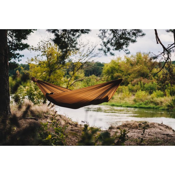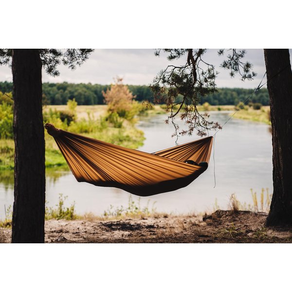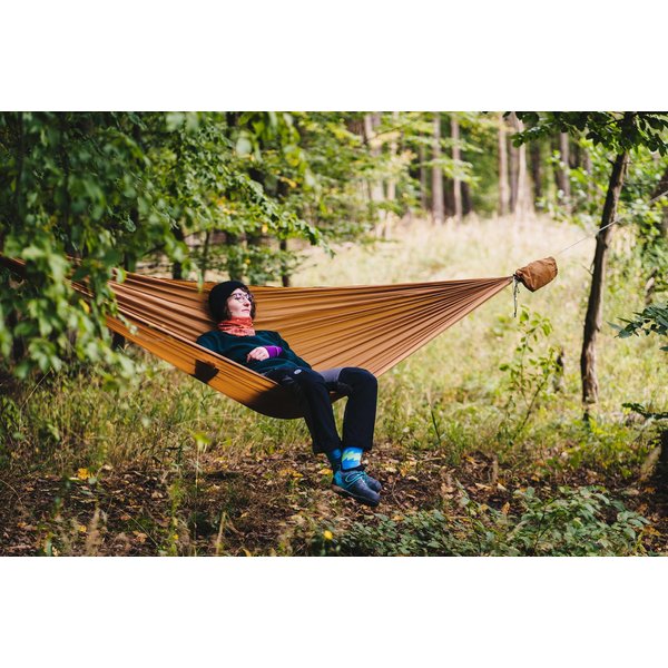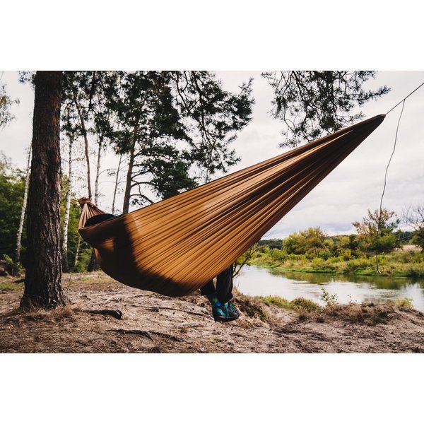 Hamak Bystry Lesovik to doskonały wybór dla miłośników natury ceniących wygodę i prostotę użytkowania. Dzięki zwiększonej długości i szerokości, oferuje przestronne miejsce do odpoczynku nawet dla osób o wzroście do 205 cm. Jego lekka i oddychająca tkanina poliamidowa w splocie ripstop jest nie tylko wytrzymała, ale także szybkoschnąca, co zapewnia komfort w każdych warunkach. Bezwęzłowy system zawieszenia Sneka, oparty na taśmach drabinkowych z Dyneema, umożliwia łatwą i szybką regulację długości, pozwalając na natychmiastowe rozkoszowanie się urokami przyrody. Hamak wyróżnia się także dbałością o środowisko, dzięki elementom z recyklingu i minimalistycznemu opakowaniu.