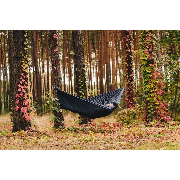 Dzięki swojej uniwersalności i wytrzymałości, stanowi idealną bazę do rozpoczęcia przygody z hamakowaniem. Hamak wykonany jest z oddychającej tkaniny nylonowej ripstop, co zapewnia komfort użytkowania nawet dla osób o wzroście do 190cm. Maksymalne obciążenie hamaka wynosi aż 250kg, co gwarantuje bezpieczny i wygodny wypoczynek dla dwóch osób. Dzięki wygodnemu pokrowcowi typu mufka, rozwieszenie hamaka zajmuje zaledwie kilka minut, a lekka konstrukcja sprawia, że łatwo go zabrać ze sobą w każdą podróż.
