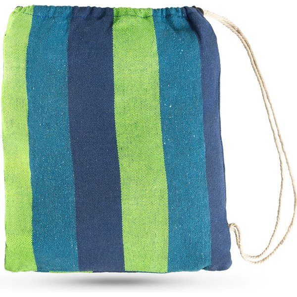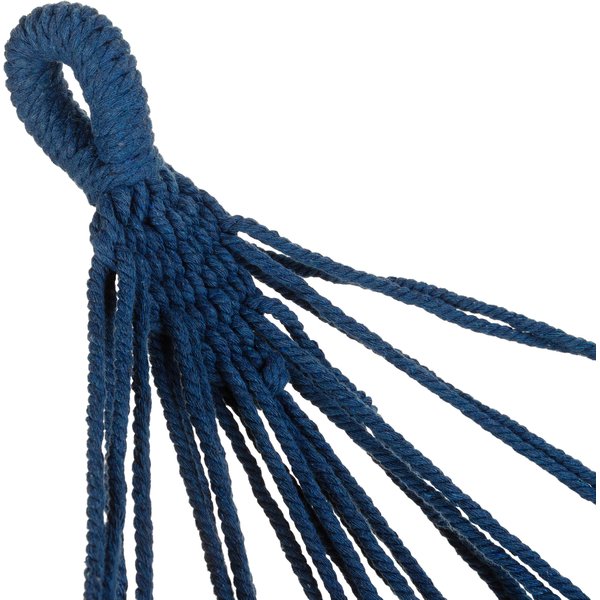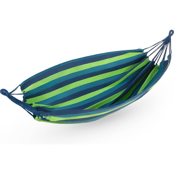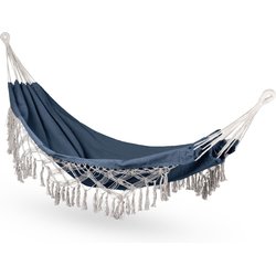 Hamak wykonany z wytrzymałej, a zarazem przyjemnej w dotyku tkaniny zapewnia doskonałe warunki do wypoczynku. Jego obszerna powierzchnia z łatwością pomieści jedną lub dwie osoby, oferując pełen komfort zarówno podczas samotnego relaksu, jak i wspólnego spędzania czasu.