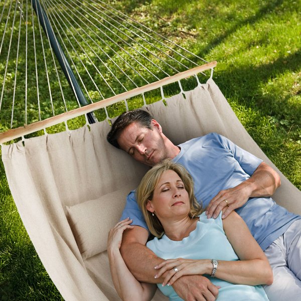 Hamak został zaprojektowany z myślą o maksymalnym komforcie i przestrzeni, dzięki czemu mogą z niego korzystać dwie osoby jednocześnie.