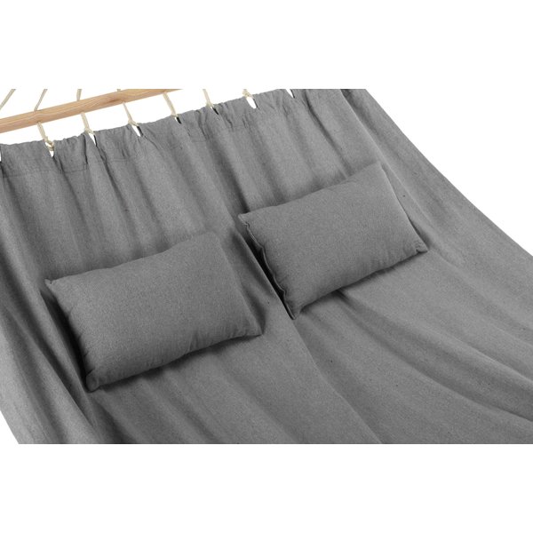 Hamak został wykonany z dbałością o detale. Dlatego konstrukcja jest trwała, a więc i bezpieczna. Ten model został wyposażony w praktyczne poduszki, dzięki którym wypoczynek będzie jeszcze przyjemniejszy.