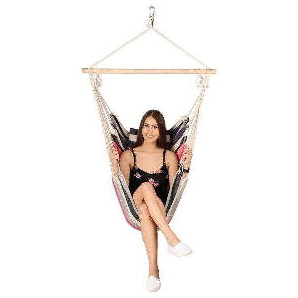 Fotel, hamak brazylijski C3107 Nils Camp pozwoli Ci wypocząć w ogrodzie, na tarasie lub balkonie. Hamak wygląda bardzo stylowo i naturalnie, dlatego z łatwością wpasuje się w każde wnętrze. Wykorzystany materiał posiada właściwości oddychające, dlatego skóra mniej się poci. Tkanina jest solidna i wytrzymała. Drewniany stelaż z metalowym uchwytem sprawiają, że hamak jest wytrzymały. W zestawie znajdziesz poduszki, które dodają uroku i pozytywnie wpływają na komfort użytkowania.