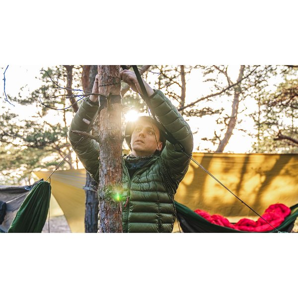 - zestaw zawiera: hamak, pokrowiec typu bishop bag, pełny superlekki system zawieszenia (2 pętle Dyneema, 2 taśmy tree-huggers, 2 kołeczki łączące), instrukcja obsługi