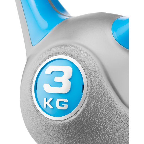 - Ochronna powłoka z PCV: Zewnętrzna warstwa z PCV zabezpiecza powierzchnię kettlebella przed ścieraniem oraz chroni podłogę w miejscu treningu.