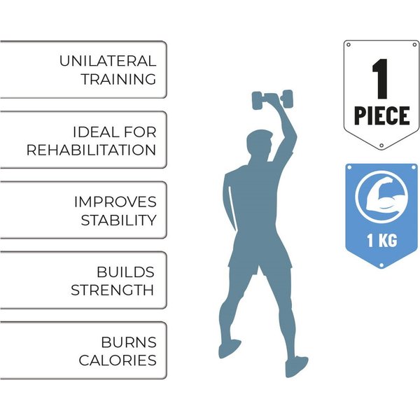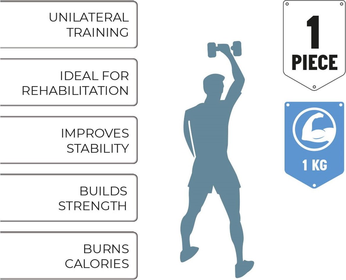 Hantla neoprenowa 1kg marki Umbro to doskonałe narzędzie do efektywnego treningu w domowym zaciszu. Pokryta miłym w dotyku neoprenem, zapewnia komfort podczas ćwiczeń oraz antypoślizgowy uchwyt, który idealnie dopasowuje się do dłoni. Hantla jest świetnym wyborem zarówno dla kobiet, jak i mężczyzn, wspomagając budowę masy mięśniowej górnych partii ciała. Charakterystyczny sześciokątny kształt zapobiega turlaniu się, co zwiększa bezpieczeństwo użytkowania. Regularne treningi z hantlami pomagają modelować sylwetkę, wzmacniać mięśnie, spalać kalorie, poprawiać stabilność i ogólną kondycję fizyczną.