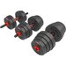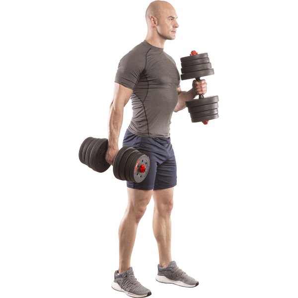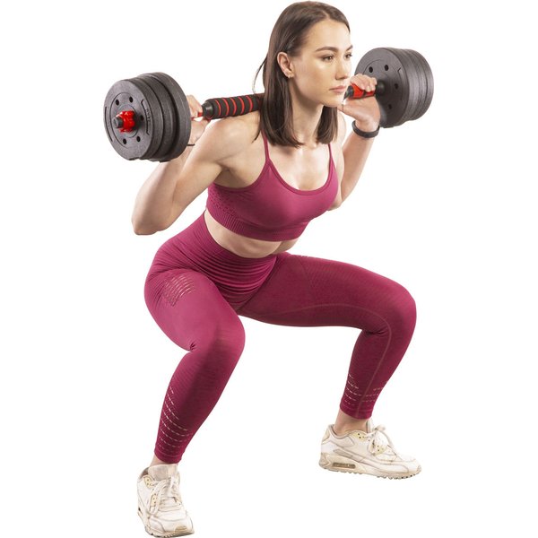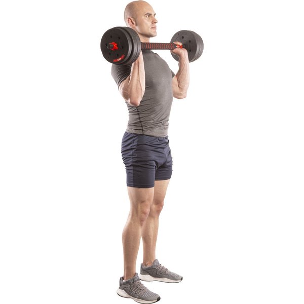 Znajdujące się w komplecie dwa krótkie gryfy, posiadają możliwość stabilnego łączenia za pomocą dedykowanego zacisku. Funkcja ta pozwala wprowadzać różnorodność do codziennych treningów i nie zmusza Cię do zakupu innych elementów. Uchwyty zostały wykończone przyjemną w dotyku pianką o wysokiej gęstości, która zapobiega tworzeniu się odcisków i gwarantuje pewny chwyt i bezpieczeństwo.