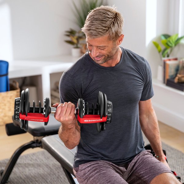 Hantla regulowana SelectTech 552i marki Bowflex zastępuje 15 wolnych ciężarów, co pozwala zaoszczędzić miejsce, maksymalizuje potencjał treningowy i gwarantuje łatwość korzystania.