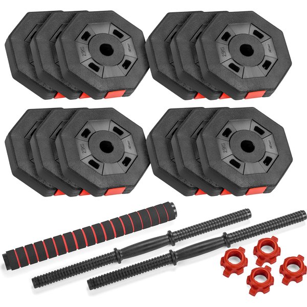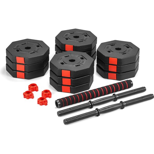 Hantle regulowane bitumiczne 2x15 kg EB Fit powinny być jedną z pierwszych rzeczy, która znajdzie się w Twojej siłowni. Wykonane zostały z wytrzymałego tworzywa, które doskonale sprawdzą się podczas codziennych treningów. Część chwytna gryfu posiada większą średnicę, co sprawia, że trzymanie hantli jest wygodne, a trening odbywa się w komfortowych warunkach. Dużym atutem zestawu jest dołączone do zestawu przedłużenie, które umożliwia łączenie dwóch gryfów. Ten produkt posiada funkcję 2w1, którą docenisz podczas regularnego użytkowania. Możesz cieszyć się nie tylko hantlami, ale również sztangą.