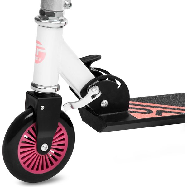 Hulajnoga jest niezwykle bezpieczna - posiada antypoślizgową wykładzinę podestu, dzięki czemu zapewnia niezbędną stabilizację. Miękkie rączki ułatwiają chwyt, a nożny hamulec daje gwarancję szybkiego zatrzymania nawet podczas szybkiej jazdy. Łożyska ABEC-5 wpływają na komfort i płynność jazdy, a duże koła z syntetycznego kauczuku pochłaniają część drgań.