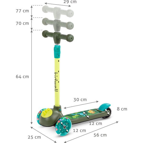 - 3 stopniowa regulacja kierownicy: 64 - 77 cm