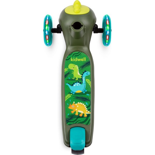Pojazd posiada intrygujące ozdoby w postaci kolców dinozaura i piękne grafiki, które spodobają się każdemu maluszkowi. Jeśli maluch nie jeździ na hulajnodze, to możesz ją szybko złożyć, aby zajmowała mniej miejsca. Trzystopniowa regulacja wysokości rączki pozwoli Ci na dopasowanie jej do wzrostu dziecka. Produkt przeznaczony jest dla dzieci już od 3. roku życia.