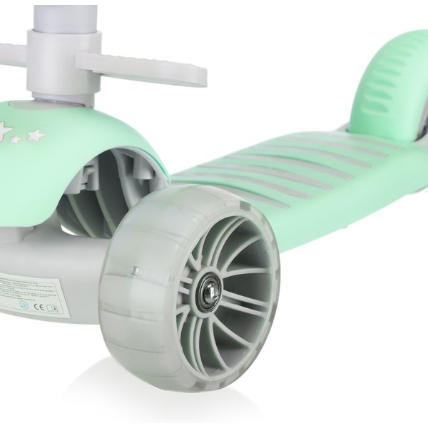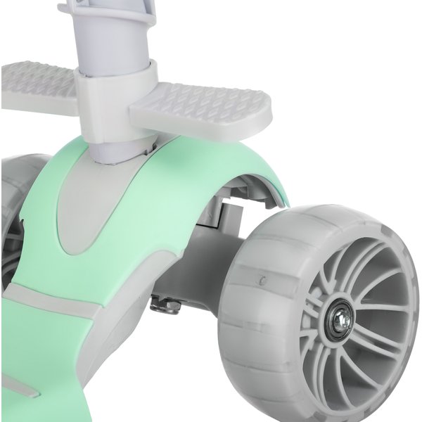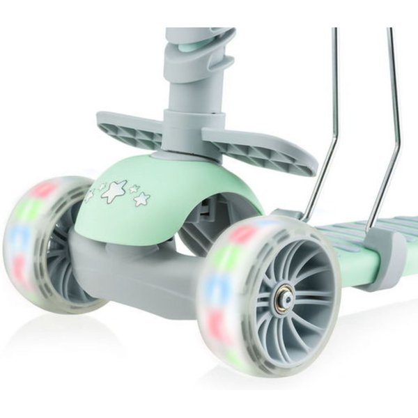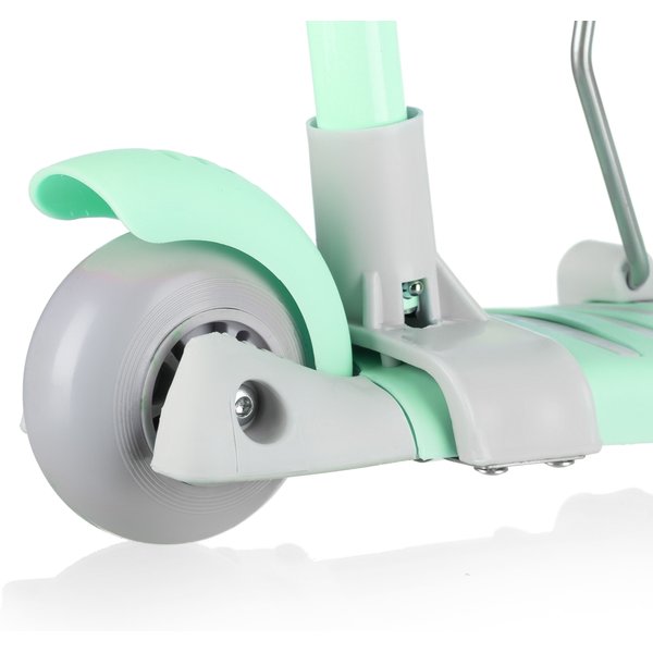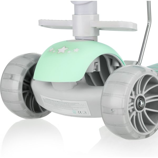 - Efektowna jazda z LED: Przednie kółka PU ze zintegrowanymi diodami LED świecą podczas ruchu, co nie tylko przyciąga uwagę dziecka, ale też poprawia widoczność po zmroku – bez potrzeby użycia baterii.
