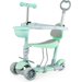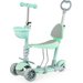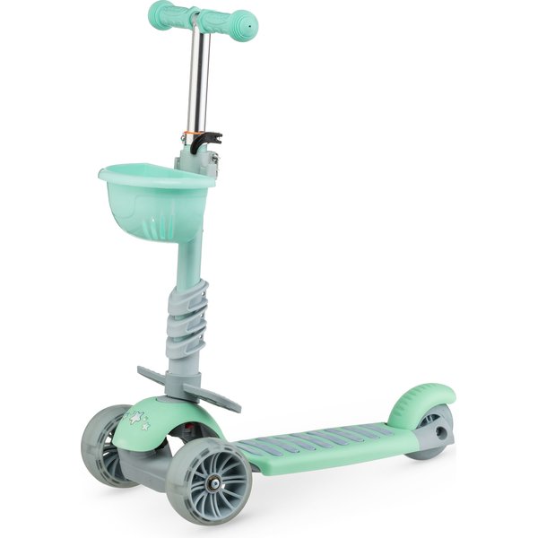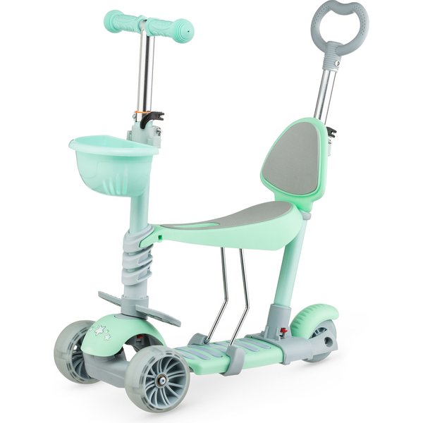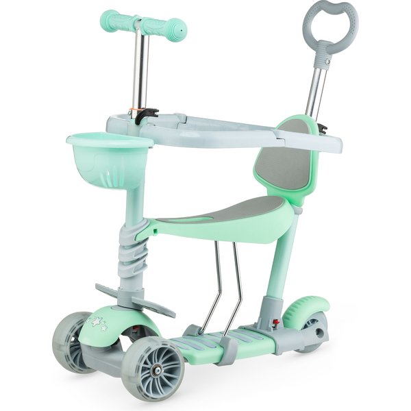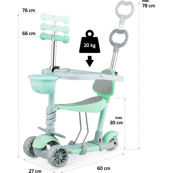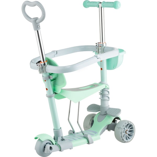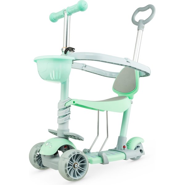 Przemyślana konstrukcja oferuje 5 opcji użytkowania: jako jeździk z siedziskiem i rączką dla rodzica oraz blokadą, jako jeździk z siedziskiem i rączką dla rodzica, jako jeździk z siedziskiem oraz jako balansowa hulajnoga trójkołowa z koszykiem lub bez. Sprawia to, że produkt rośnie wraz z dzieckiem, a o monotonii nie ma mowy. Jeździk z siedziskiem i rączką dla rodzica oraz blokadą to rozwiązanie dla dzieci, które dopiero poznają skating. Wygodne, wyprofilowane siedzisko i boczne podnóżki zapewnią komfort jazdy. Rączka dla rodzica ma regulowaną wysokość, w efekcie czego można wygodnie kontrolować jadące dziecko. Gdy maluch nabierze już wprawy, można korzystać z jeździka bez rączki oraz bocznej osłony.