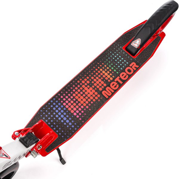 Hulajnoga Urban Bann Meteor to idealny wybór dla osób szukających wygodnego i trwałego środka transportu do szkoły, pracy czy na rekreacyjne przejażdżki. Jej lekka, aluminiowa konstrukcja zapewnia trwałość, a stalowe śruby gwarantują solidność połączeń. Gumowe rączki na kierownicy i 3-stopniowa regulacja wysokości umożliwiają dopasowanie do użytkowników do 180 cm wzrostu, zapewniając komfort jazdy. Duży, niski podest ułatwia utrzymanie równowagi, a olbrzymie koła i wysokiej jakości łożyska poprawiają stabilność i płynność ruchu. Tylni błotnik chroni przed ochlapaniem i pełni funkcję hamulca. Składana konstrukcja umożliwia łatwe przenoszenie i przechowywanie, a unikalna kolorystyka i solidne wykonanie sprawiają, że hulajnoga jest atrakcyjna i trwała.