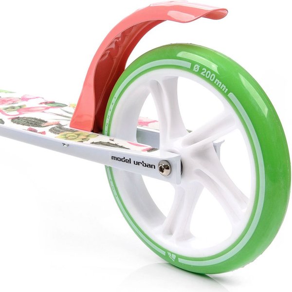 Model ma 3-stopniową regulację wysokości kierownicy, więc posłuży zarówno maluszkowi, jak i starszemu dziecku przez niejeden szalony sezon. Tym bardziej że jest naprawdę wytrzymała - wykonana z aluminium ma niską wagę, a przy tym pozwala na jazdę nawet dorosłej osobie bez obaw o uszkodzenie. Urban to hulajnoga miejsca, dlatego ma duże kółka, absorbujące wszelkie nierówności i drgania, dzięki czemu jazda krzywymi chodnikami jest komfortowa jak po parkiecie. Do tego ma gumowe uchwyty, co wpływa na komfort i wygodę jazdy, oraz oczywiście tylny hamulec - dla bezpieczeństwa.