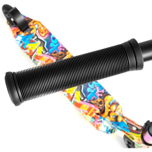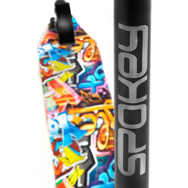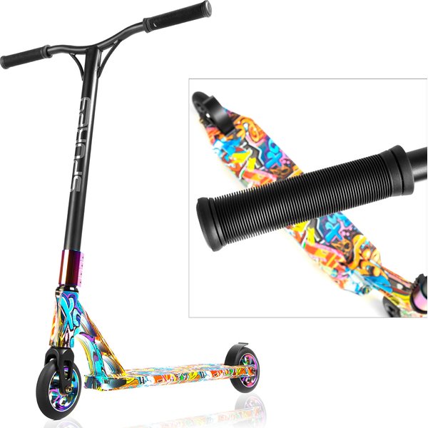 Dzięki specjalnie zaprojektowanej konstrukcji, hulajnoga ta doskonale sprawdzi się zarówno podczas skoków z dużych wysokości, jak i podczas wykonywania skomplikowanych trików w skateparku. Jedną z najważniejszych cech tej hulajnogi jest jej ultralekka i równocześnie niezwykle wytrzymała konstrukcja. Metalowa platforma z grafiką zapewnia niezawodność i stabilność podczas wykonywania różnorodnych tricków. Dodatkowo, hulajnoga wyposażona jest w koła 110mm z łożyskami, które gwarantują płynną jazdę i precyzyjne prowadzenie.