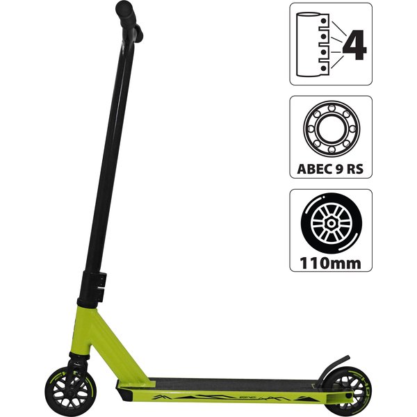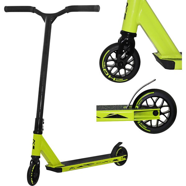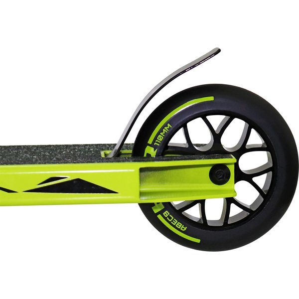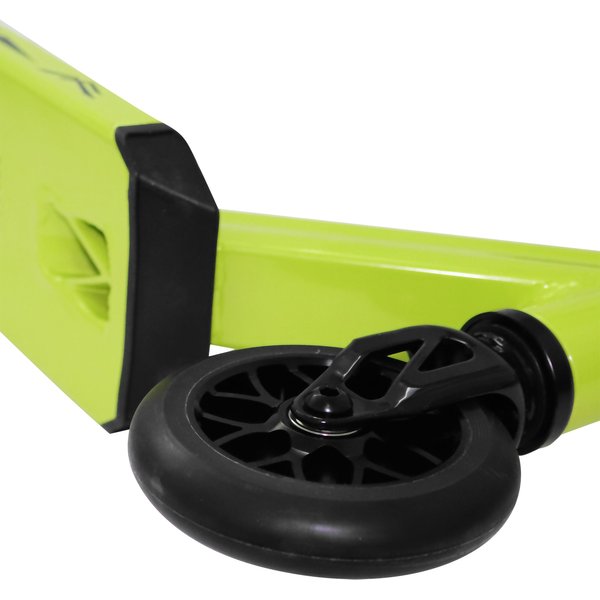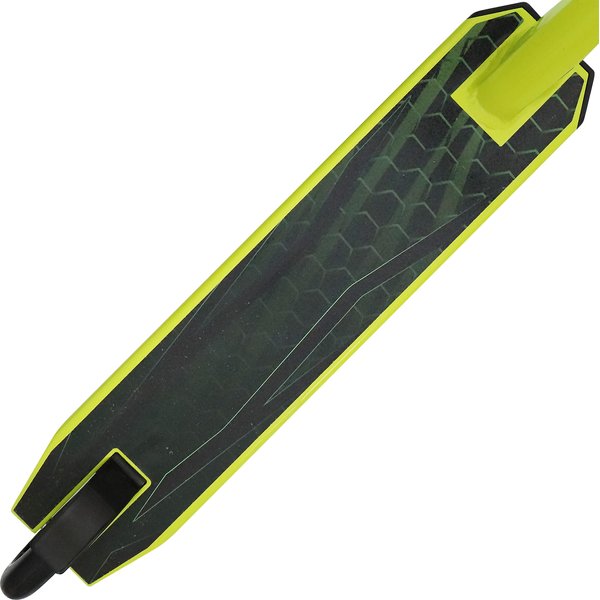 System kompresji HIC pozwala na płynne i świetne wykonywanie barspinów. Stalowy widelec zwiększa siłę i wytrzymałość konstrukcji hulajnogi. Wyprofilowane, gumowe uchwyty gwarantują pewny chwyt. Aluminiowy i antypoślizgowy podest zapewnia stabilne podparcie dla stóp. Kauczukowe kółka posiadają aluminiowy rdzeń i średnicę 110mm. Łożyska ABEC-9 zapewniają świetną amortyzację i pochłanianie drgań.