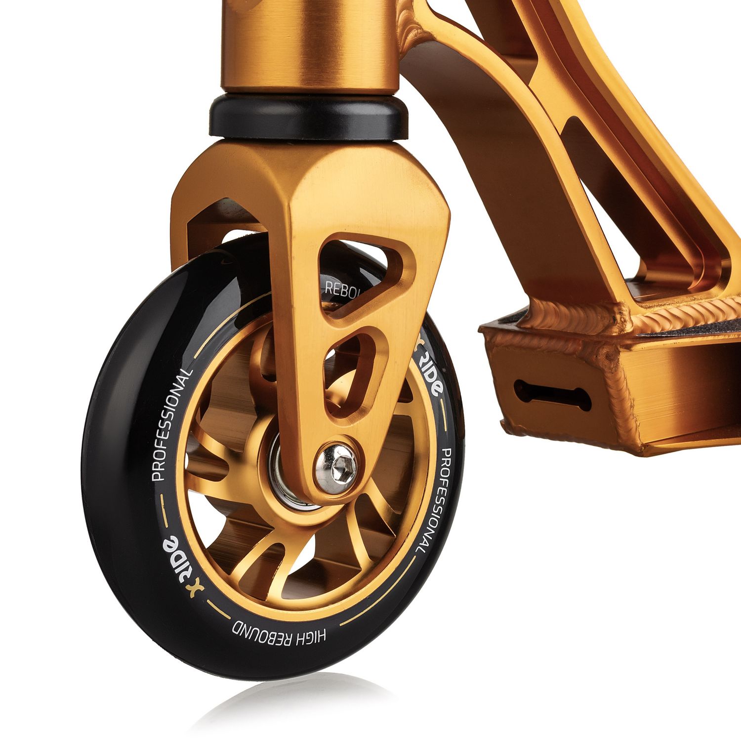 Potrzeba większej dynamiki i płynności jazdy? Hulajnoga została wyposażona w 110-milimetrowe kółka z serii High Rebound, które zapewniają szybkie przyspieszenie i lepsze wybicie podczas tricków. Zastosowany materiał PU o twardości 82A oraz aluminiowy rdzeń Alu Core zwiększają odporność kółek na ścieranie i deformacje przy intensywnej jeździe.