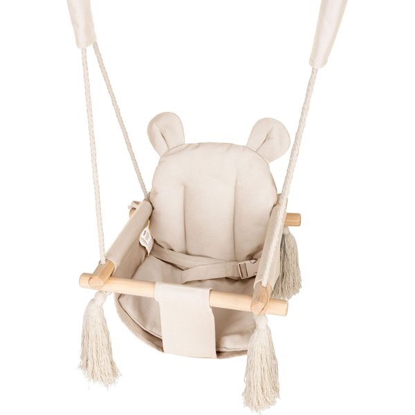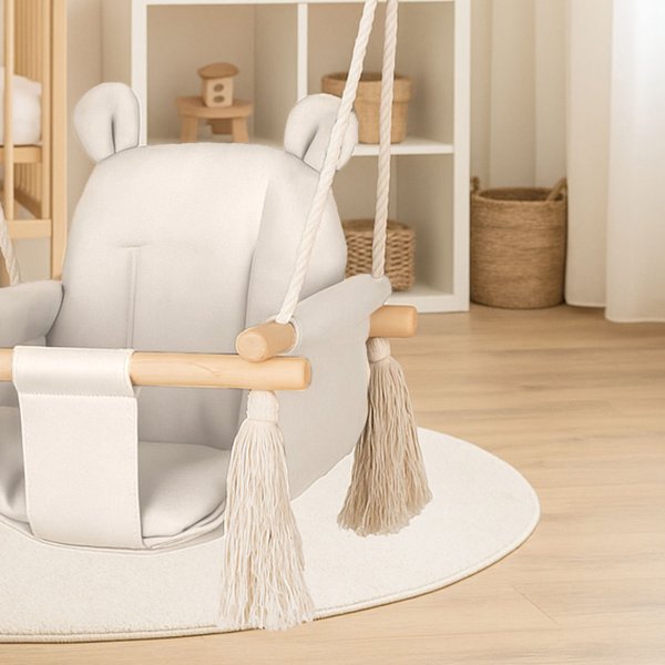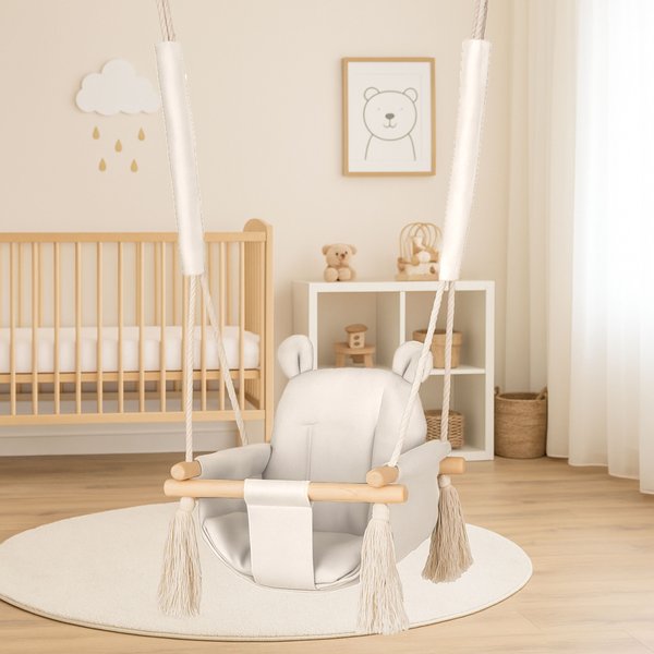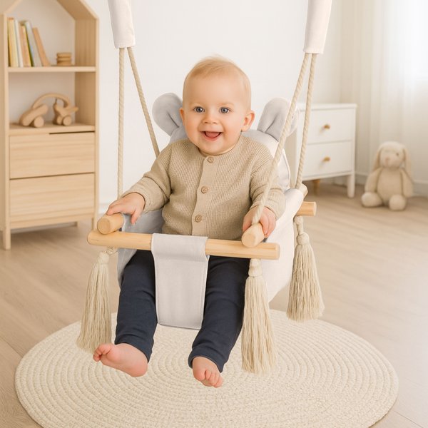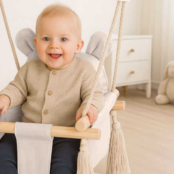 - Miękkie siedzisko: Bawełniana tkanina zapewnia odpowiednią cyrkulację powietrza, a miękkie siedzisko zapobiega uczuciu dyskomfortu. To doskonałe rozwiązanie dla dzieci, które uwielbiają bujać się przez dłuższy czas.