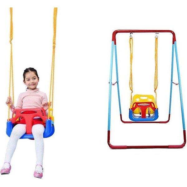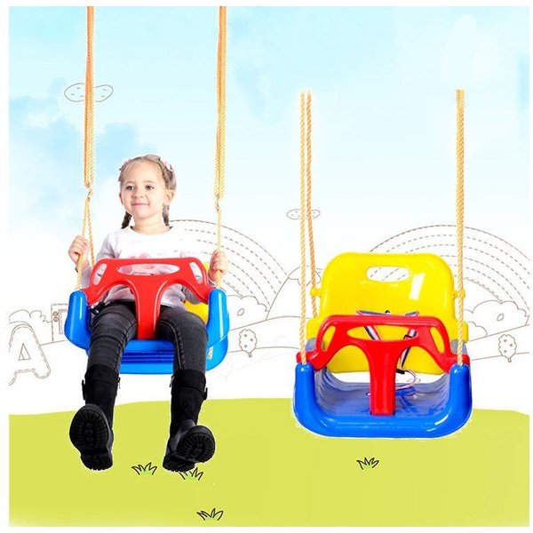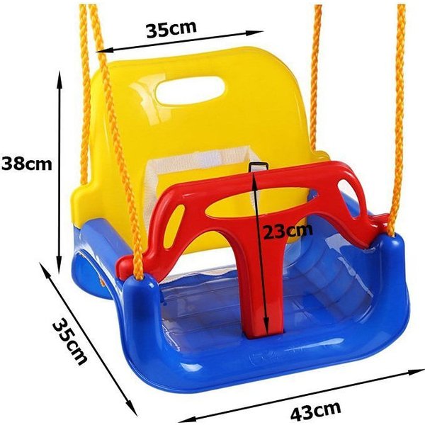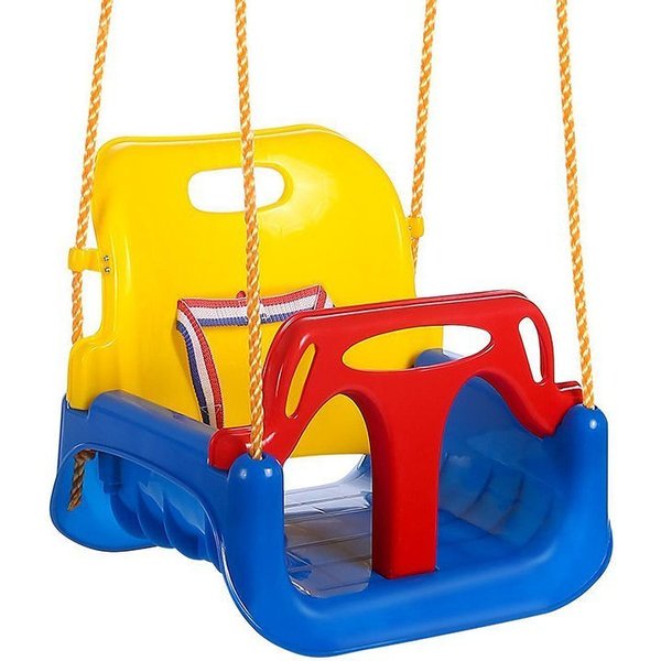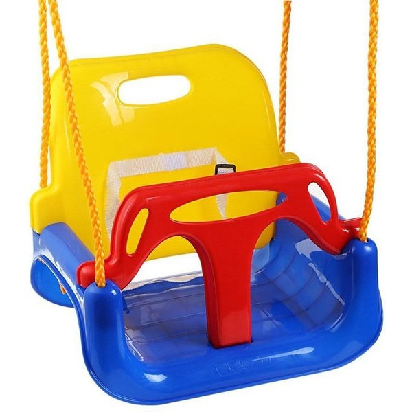 - pełna huśtawka z oparciem i barierką z przodu dla najmłodszych dzieci (sugerowany wiek: 6 miesięcy-3 lata)