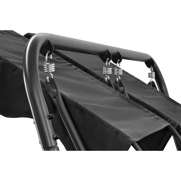 Dzięki szerokim fotelom z miękkimi siedziskami i oparciami oraz stabilnej konstrukcji ze stali, zapewnia komfortowy relaks dla dwóch dorosłych osób. Jedną z najważniejszych cech huśtawki są daszki, które chronią przed nadmiernym słońcem lub deszczem, zapewniając cień w upalne dni. Dodatkowo daszki można łatwo zdjąć, aby cieszyć się promieniami słonecznymi.