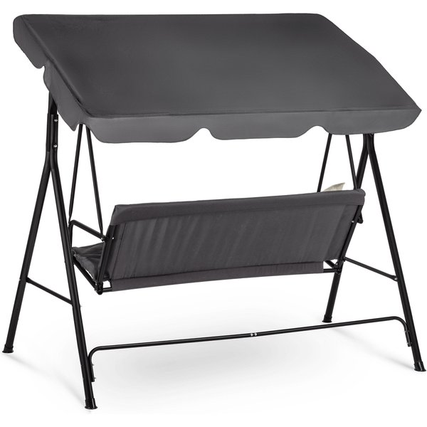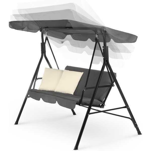 - Praktyczny, regulowany daszek: Huśtawka wyposażona jest w daszek chroniący przed słońcem i lekkim deszczem, którego kąt nachylenia można łatwo dostosować.